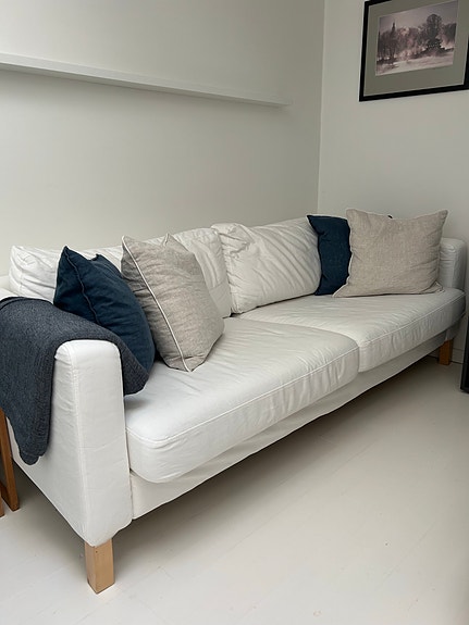 Pent brukt IKEA Karlstad sofa med hvitt trekk- RESERVERT