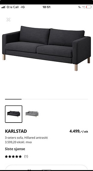 Ønsker å kjøpe trekk til 3-seter IKEA Karlstad sofa