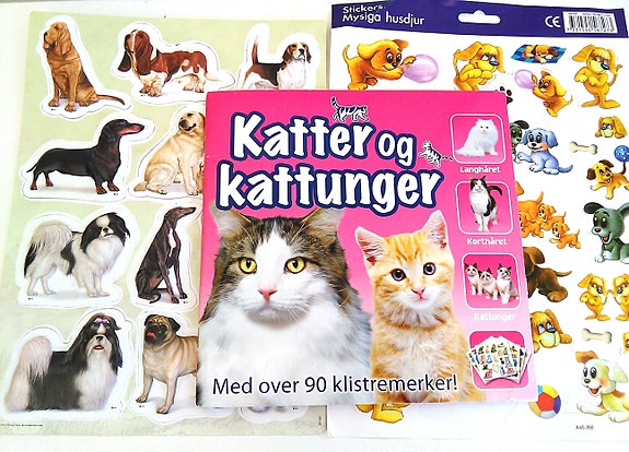 Bok med klistremerker av katter og kattunger + ekstra hunde-klistremerker.