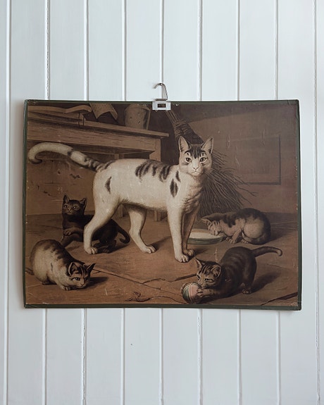 Gammel skoleplansje, kattemor med kattunger