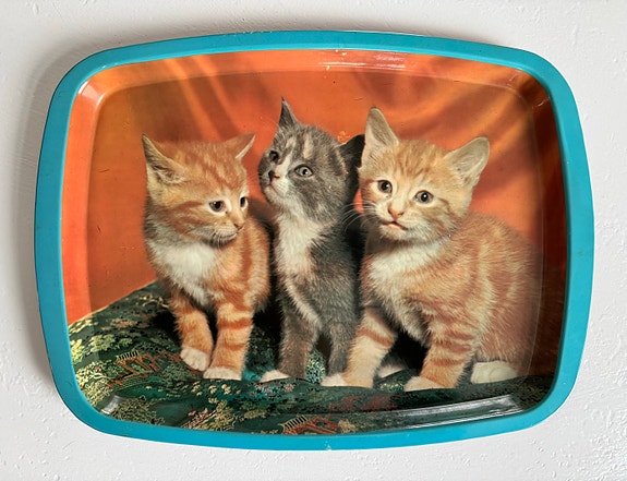 Vintage Worcester Ware metallbrett med søte kattunger – Retro 60-talls