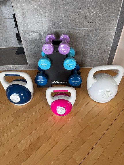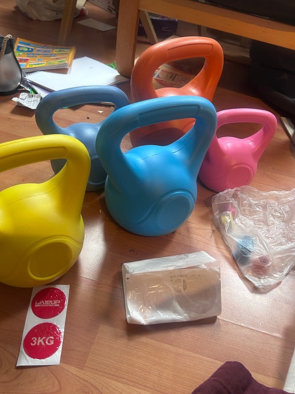 vekter selges samlet flere bilder, kettlebells manualer med mer