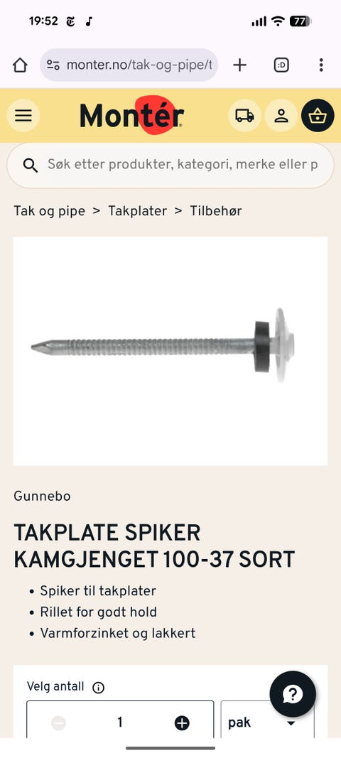 Takplatespiker/ klokkespiker 100*3,7 galvanisert ø kj