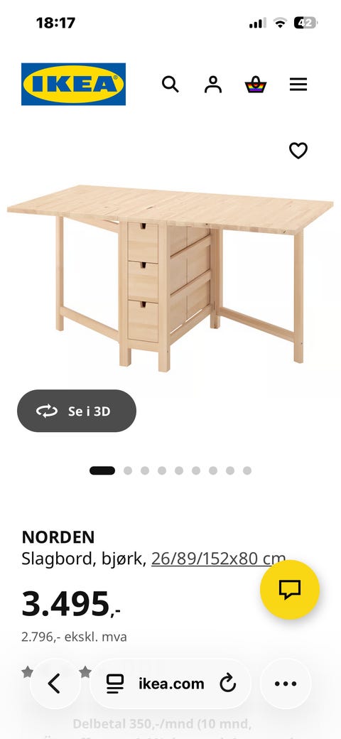 IKEA Nordviken Klaffebord, kjøkkenbord