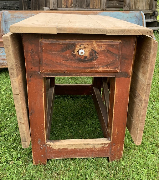 Rustikt Vintage heltre klaffebord med to unike rustikke Zorn stoler