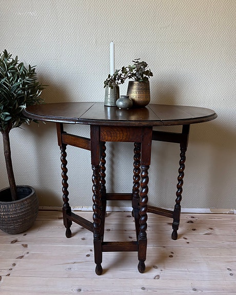 Sjarmerende lite klaffebord i heltre eik – ca. 1890–1910