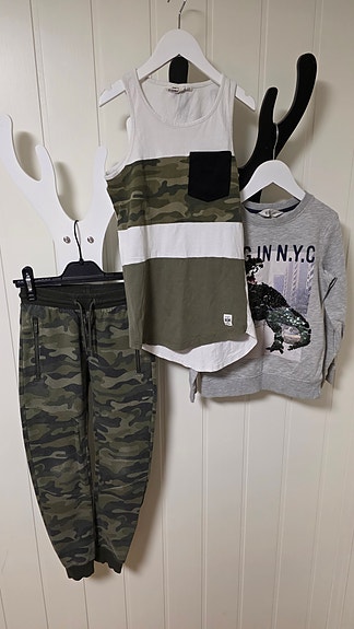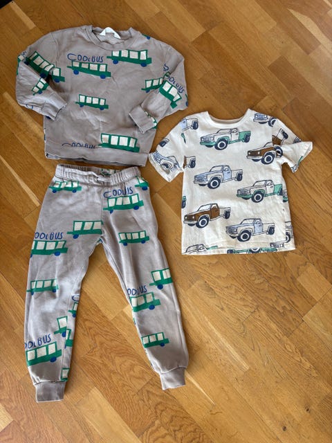Klespakke gutt, m div. sommertøy m bla. Dinosaurmotiver, str. 128-134