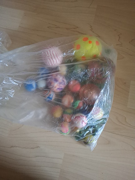 Pose med diverse klinkekuler og sprettballer
