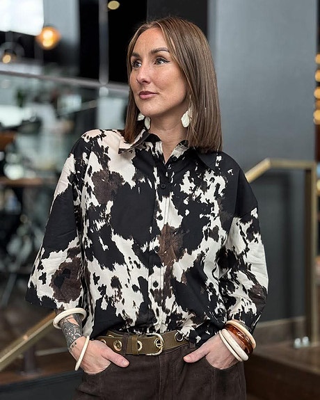 Ny ubrukt Karen by Simonsen ku print skjorte