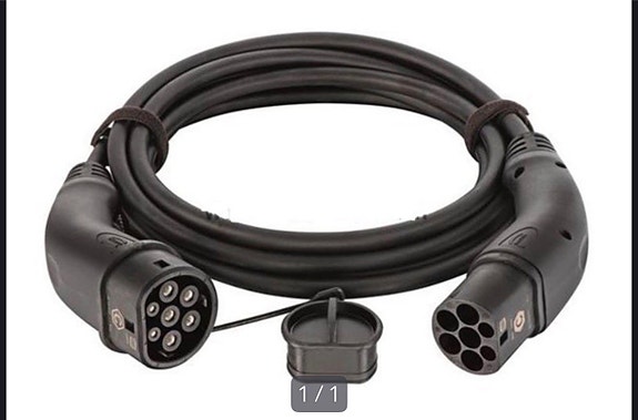 Type 1 til Type 2 ladekabel til elbil, svart 5m