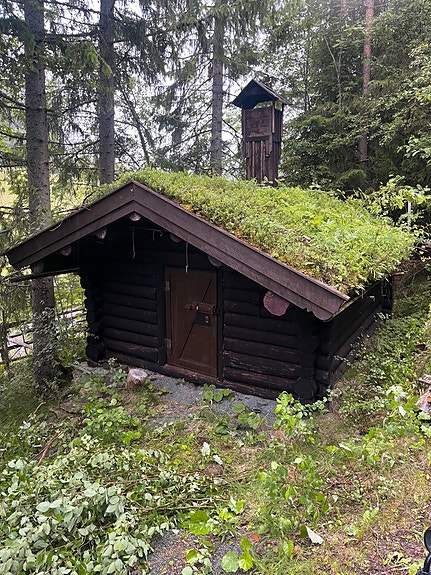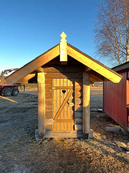 Laftet uthus/bod, ved bod, kværnhus, lekestue, brønnhus,laftet bod.