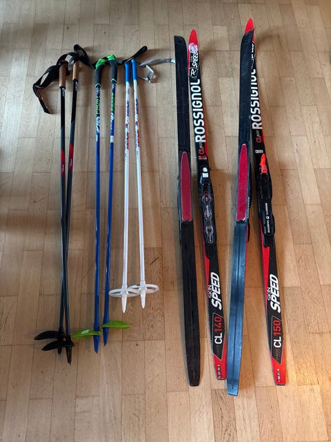 Langrennski, staver, skisko og heelys rullesko til barn.