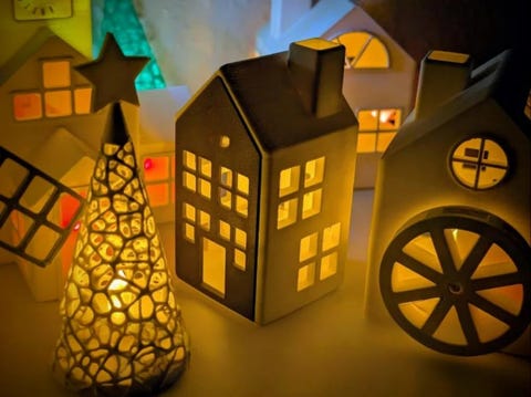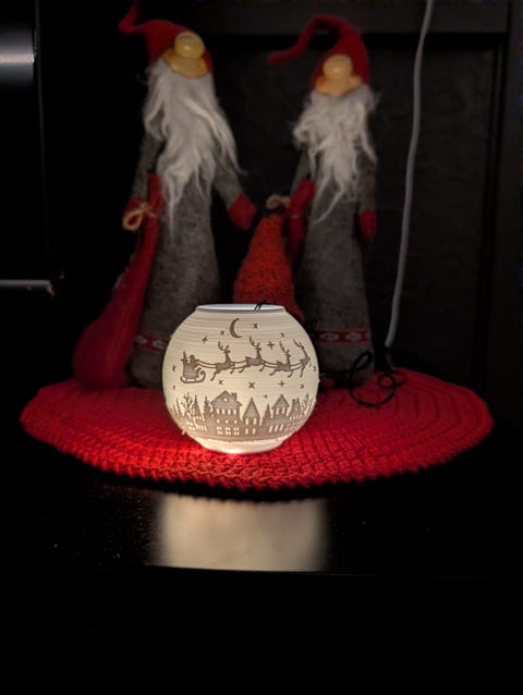 NY, ubrukt Intergjøpakke Lysestake Hadeland glassværk, led lys og koselig nisse