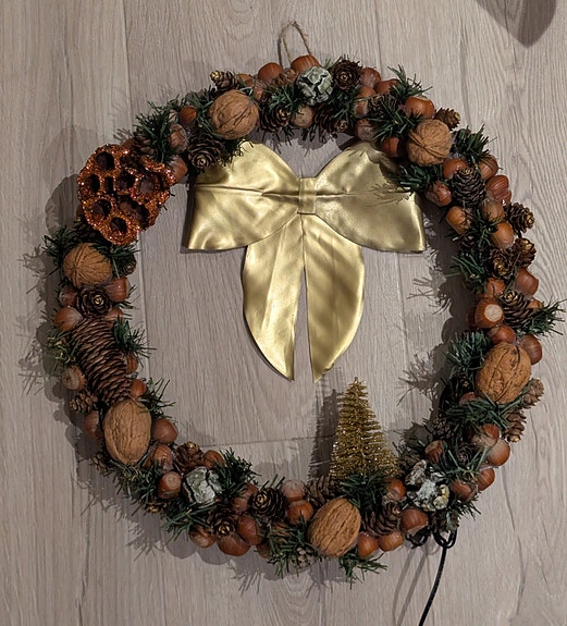 Håndlagde julekrans + dekorasjonsbelysning Ring STELLA - 36cm