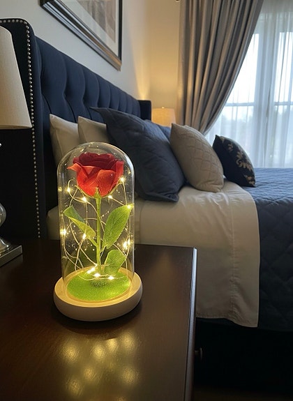 🌹 Eternal Rose i glasskuppel – med LED-lys 🌟