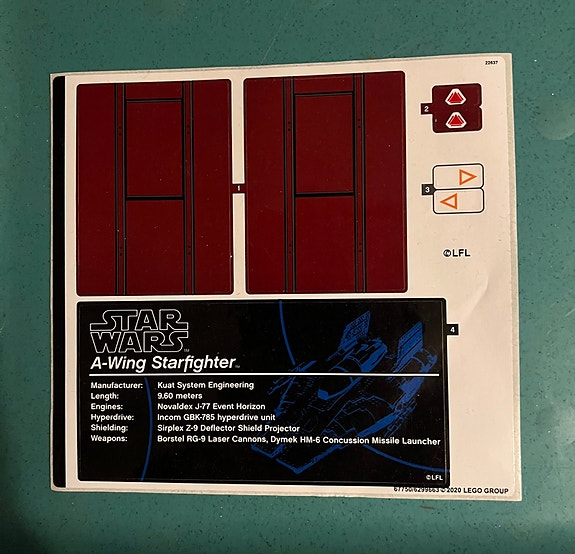 Klistremerker - Lego Star Wars - A-wing Starfighter - UCS (75275)