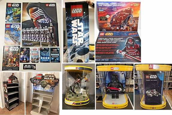 Tar imot/kjøper LEGO Star Wars reklame, plakater og butikkmateriell