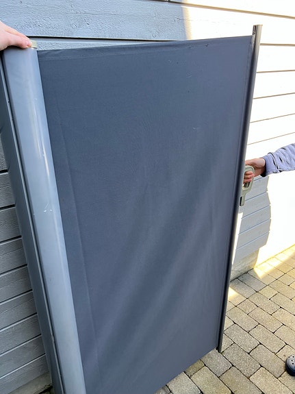 Levegg/vindskjerm/innsynsskjerm uttrekkbar, ubrukt, 1.4m x 3m
