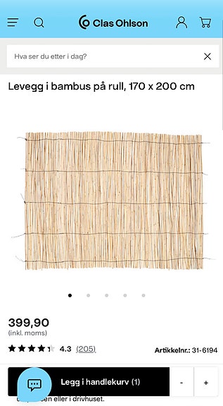 Reservert! Levegg i bambus på rull - helt ny!