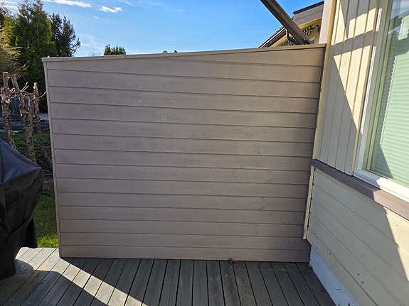 Vindskjerm / levegg til terrasse med fester