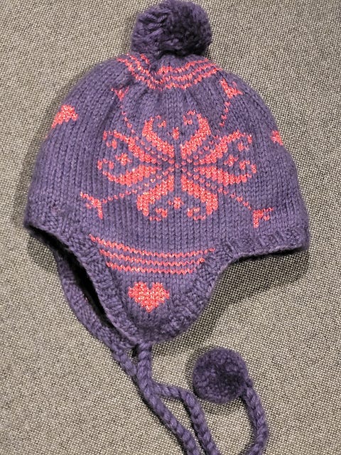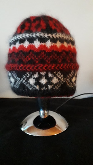 Mønsterstrikket lue - som ny