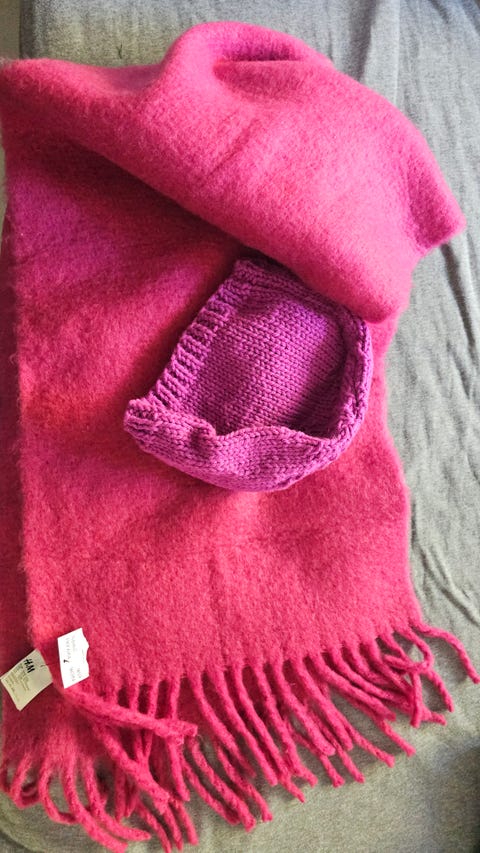 HM pink scarf and homemade pink lue