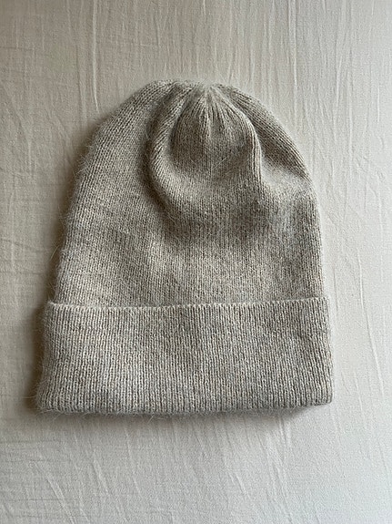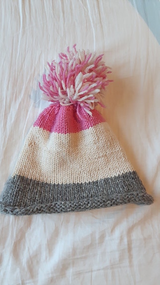 Superfin hjemmestrikket lue i ull - Rosa grå kremfarget