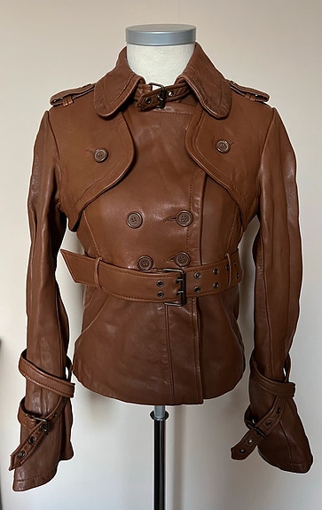 Y2K Allsaints skinnjakke «Mini Mac», pilot-/aviatorstil m/beltedetaljer, S/36