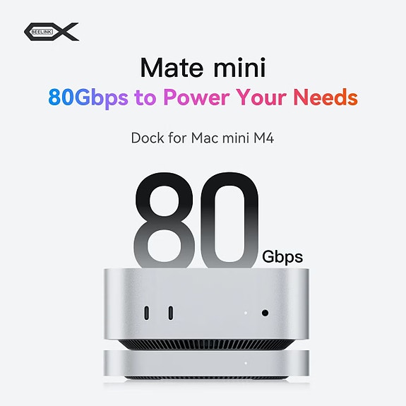 Beelink Mate mini 80Gbps Dock for Mac mini M4 med 2TB + 2TB M2