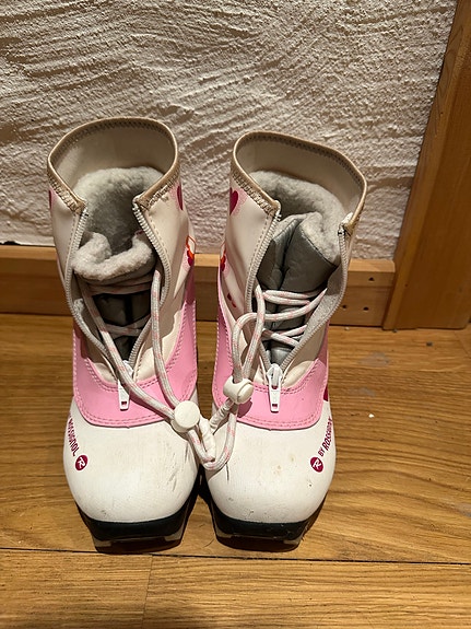 Madshus langrennski med Rottefella-bindinger, røde,2 sett staver og skisko