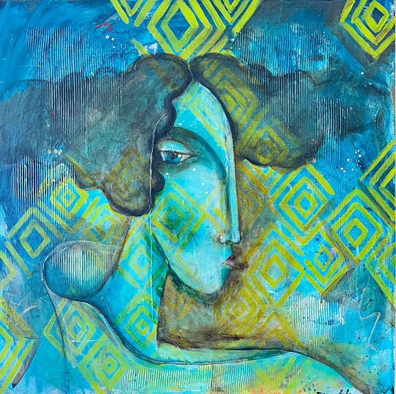 Håndmalt maleri, akrylteknikk på lerret. 50/50cm