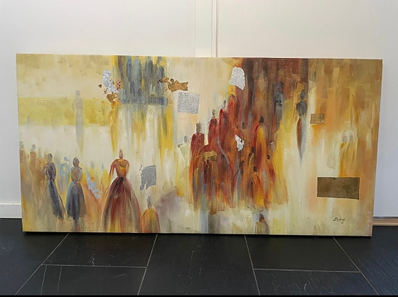 Originalt abstrakt maleri - “Gylden ro” | Akryl & gull | 100×50 cm