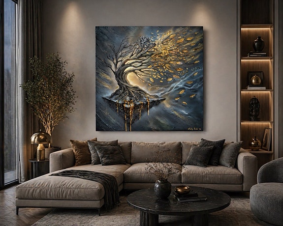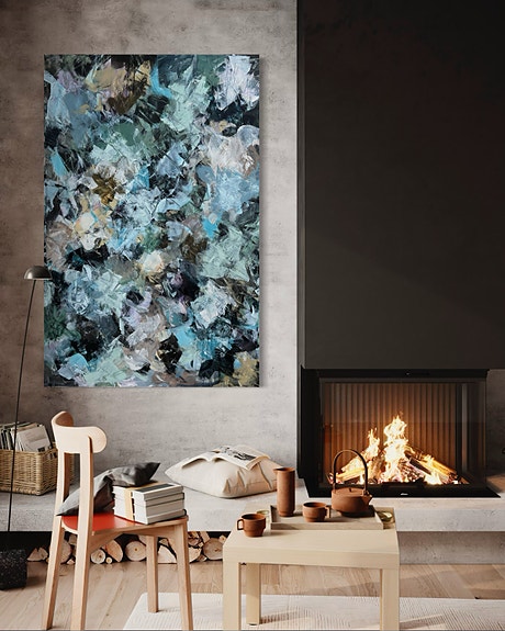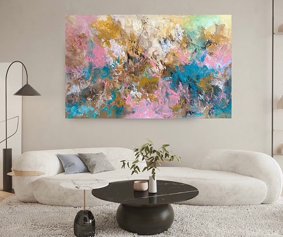 Stort abstrakt maleri "Pennies from Heaven" Mål 120x150 cm