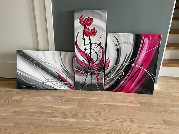 Abstrakt maleri tredelt lerretsbilde rosa og grå