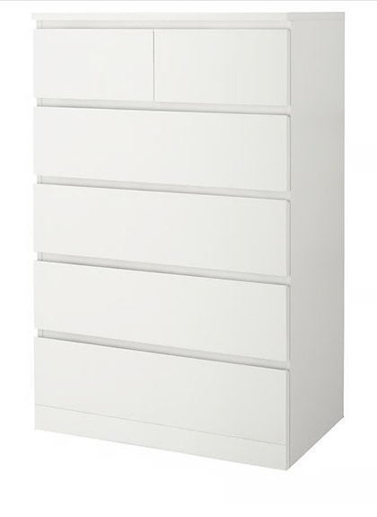 IKEA Malm kommode med 6 skuffer og speil, som ny