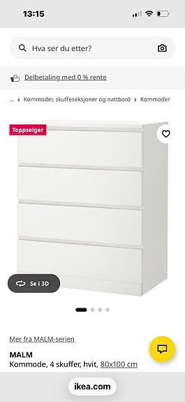 IKEA MALM kommode med 3 skuffer.( Hvit)