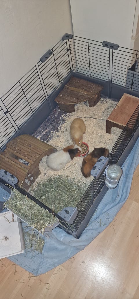 3 marsvin med bur