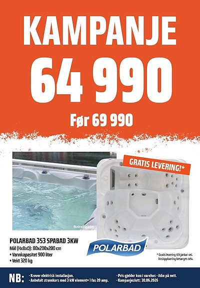 KAMPANJE SPA / MASSASJEBAD ! POLARBAD 353 3 KW FRITT LEVERT!