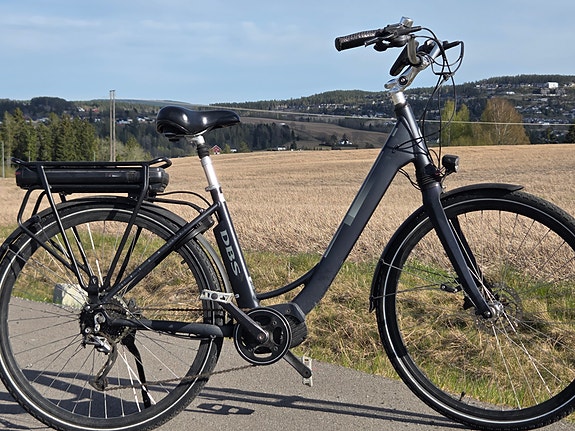 Elsykkel med sterk motor til trekking av vogn, og lavt innsteg. Merida