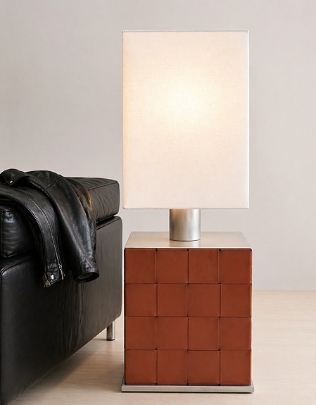 Eksklusiv Natuzzi «Yoruba» gulvlampe i brunt flettet skinn, Italiensk design
