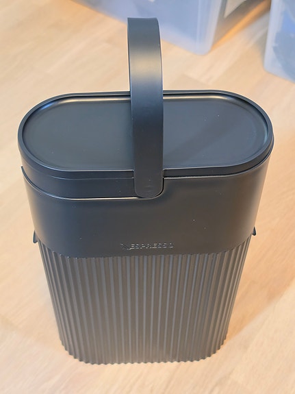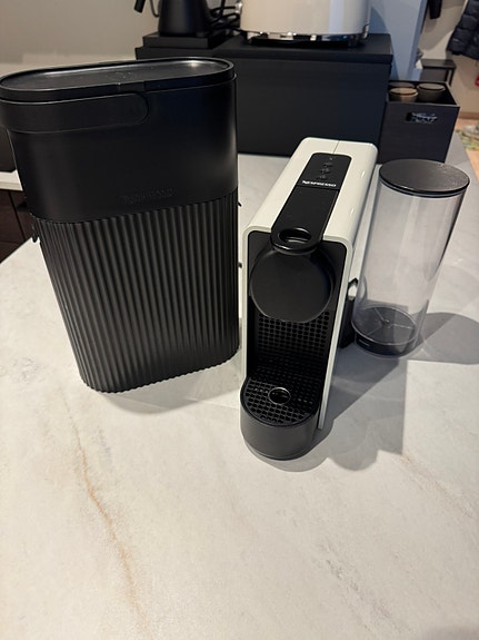 Nespresso kapselmaskin med tilhørende gjenvinningsbeholder