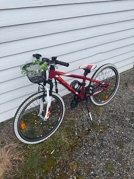 24” barnesykkel med gir, kurv og støtte – klar til bruk