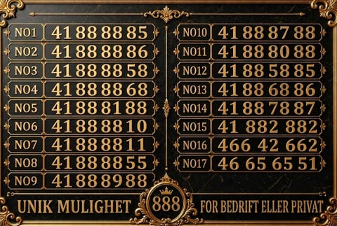 EKTE GULLNUMMER 888 SERIER. PERFEKT FOR BEDRIFT/PRIVAT/FAMILE MED BARN