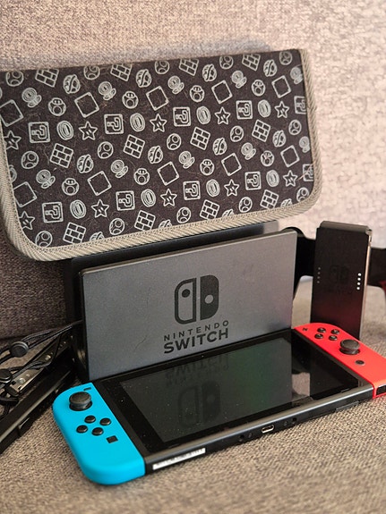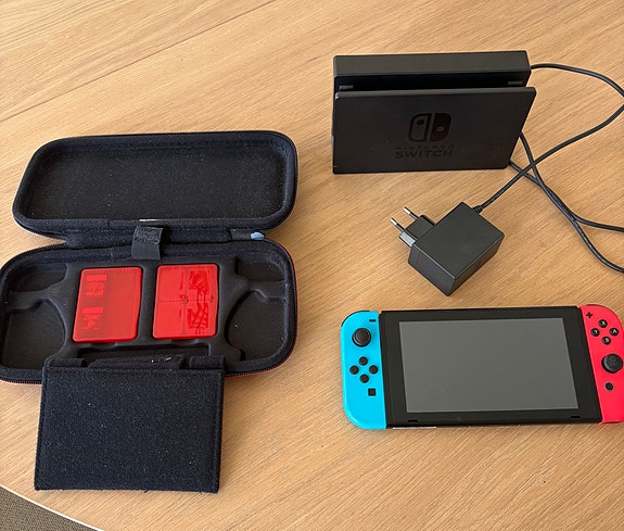 Nintendo Switch med tilbehør – pent brukt, Mario-etui