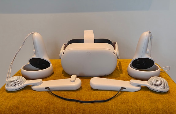 Oculus Quest 1 VR-briller med håndkontrollere og tilleggsutstyr