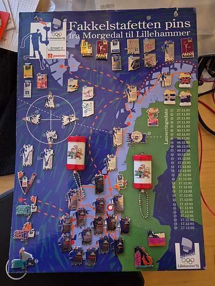 Lillehammer 94 OL fakkelstafetten pin-samling på kart