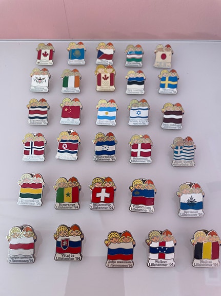 OL Lillehammer 1994 samling pins med flagg og motiver