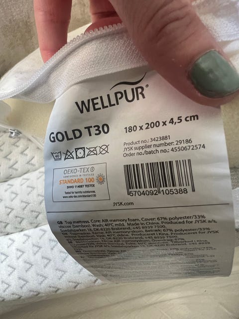 WELLPUR GULEN overmadrass -kun prøvd i tre netter