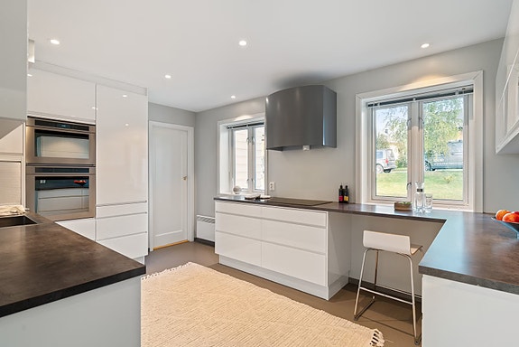 Komplett kjøkkeninnredning fra Drømmekjøkkenet med hvitevarer, ovn, Røroshetta