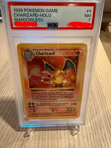 1999 POKEMON GAME SHADOWLESS #4 CHARIZARD-HOLO PSA 7